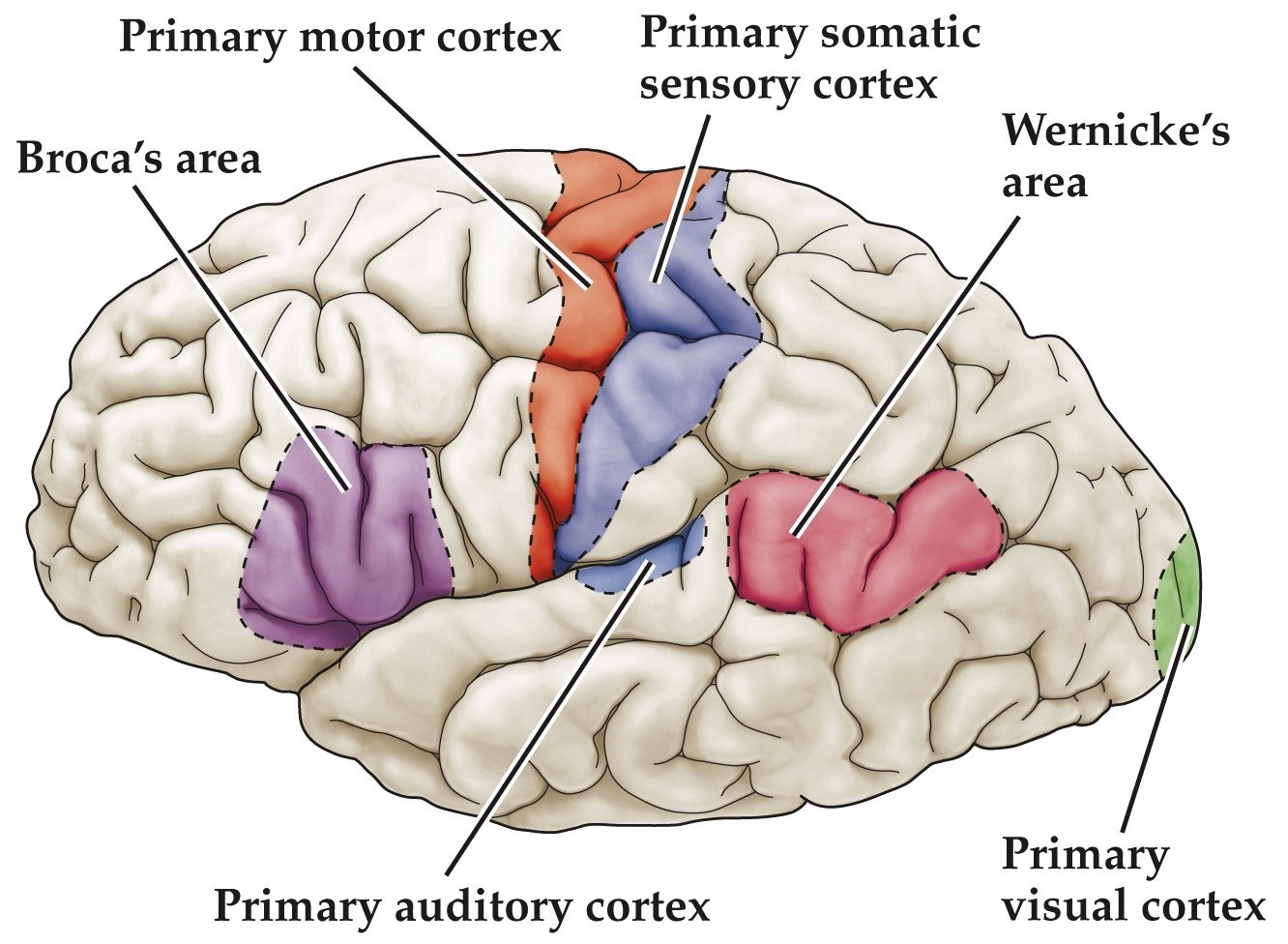 Major brain areas involved in the comprehension and production of language