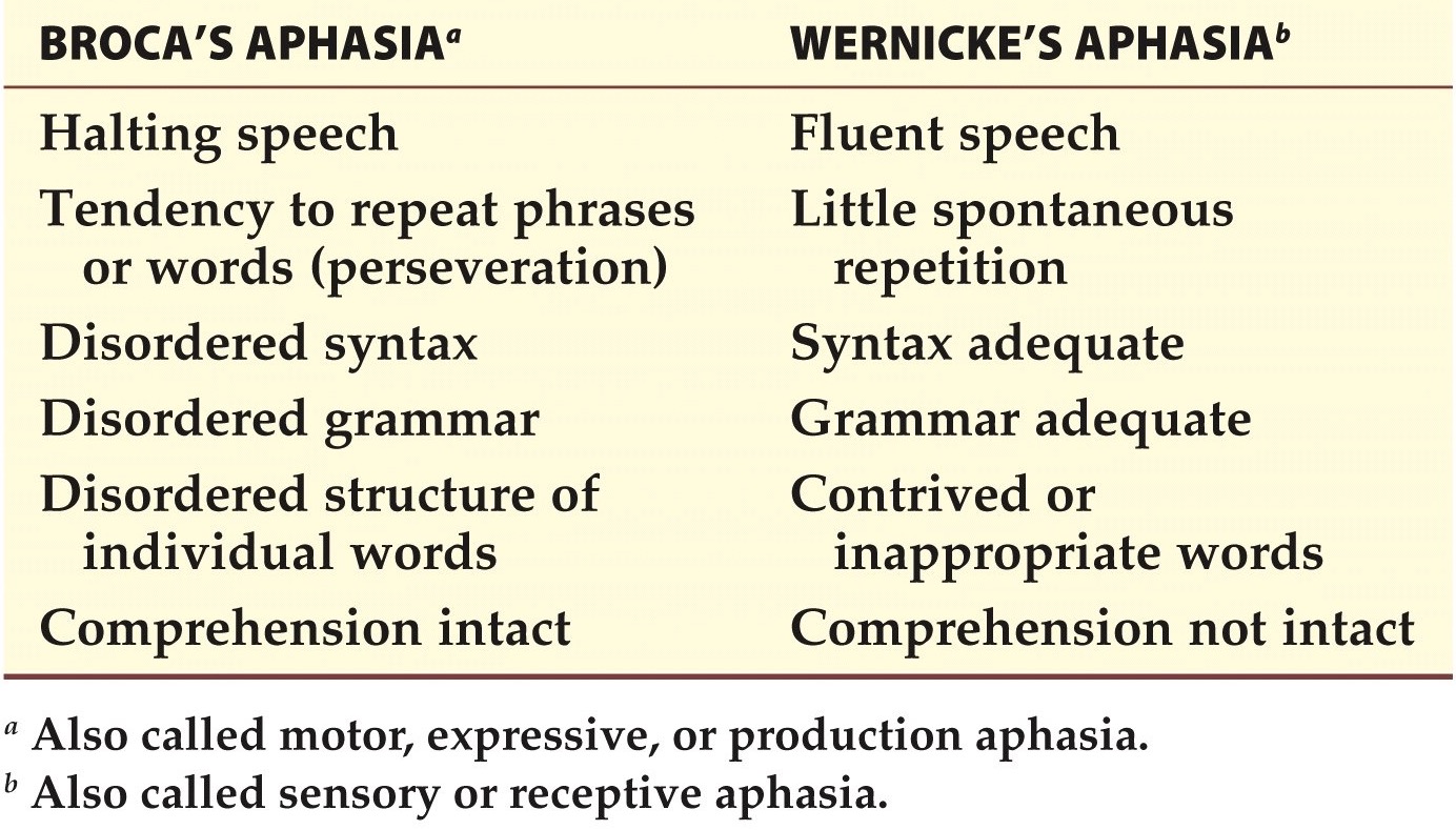 Characteristics of Broca's and Wernicke's aphasias