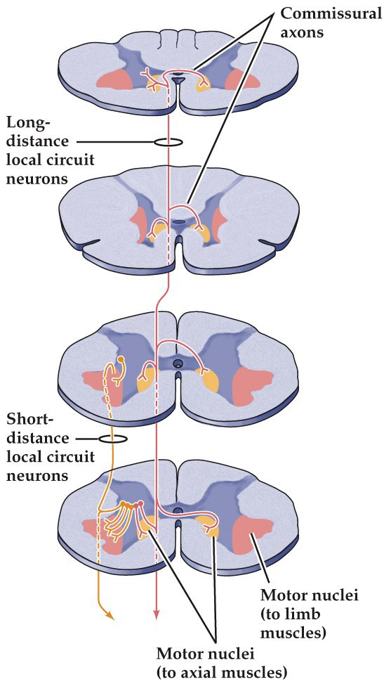 - Medial intermediate zone local circuit neurons project to medial ventral horn motor neurons
