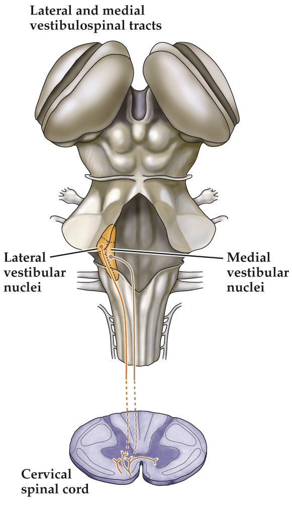 - Project to medial regions of spinal gray matter (vestibulospinal tract)