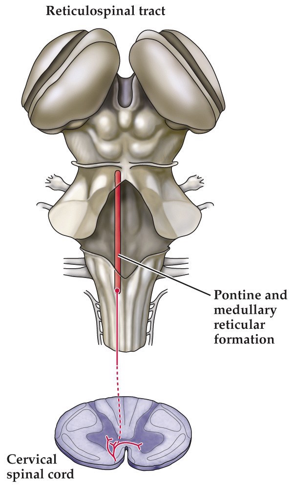 - Project to medial regions of spinal gray matter (reticulospinal tract)