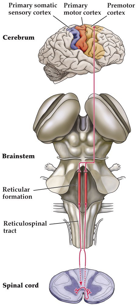 Reticulospinal tract function– anticpate body posture control