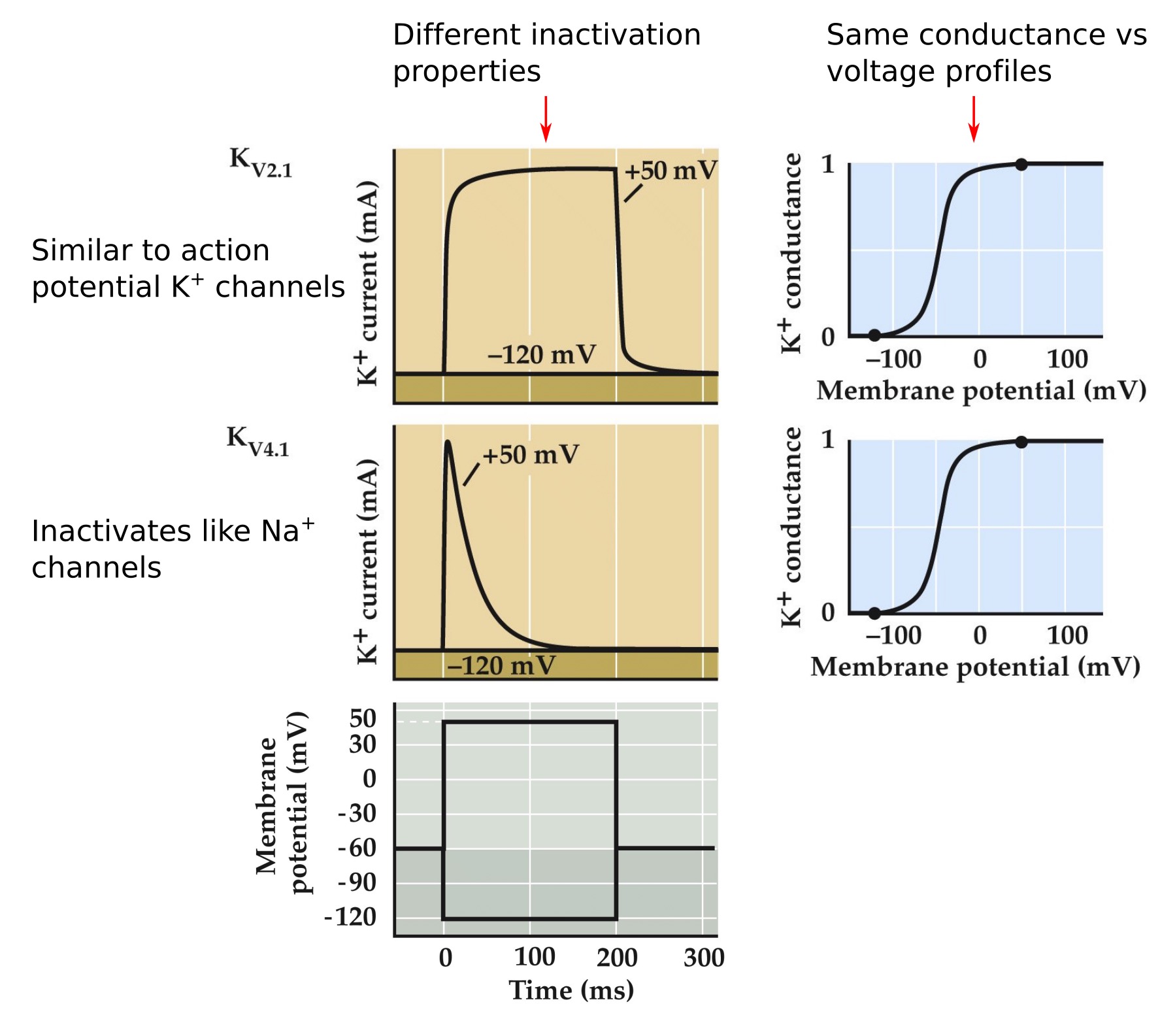 • Depolarization inactivates Na⁺ channels but not K⁺ channels